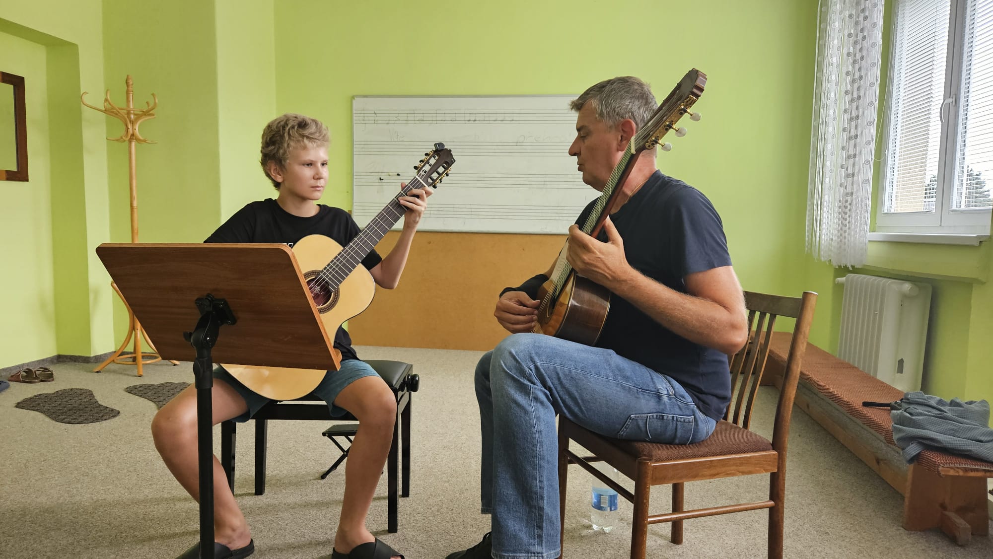 Letní hudební kemp konaný 19. - 23. 8. 2024 je určen pro účastníky krajských kol aktuálního ročníku soutěží ZUŠ. V letošním roce tedy proběhly kurzy hry na klavír, kytaru a smyčcové nástroje. Kurzy probíhají jako pětidenní akce, vždy o letních prázdninách a na programu je intenzivní celodenní výuka zahrnující nácvik skladeb s odbornými lektory z Plzeňské konzervatoře. Na konci kempu vystoupili všichni účastníci na společném koncertě v Domě hudby. Za kytarové oddělení naší školy se účastnil Sebastian Janča ze třídy pana učitele Jiřího Kučvy.