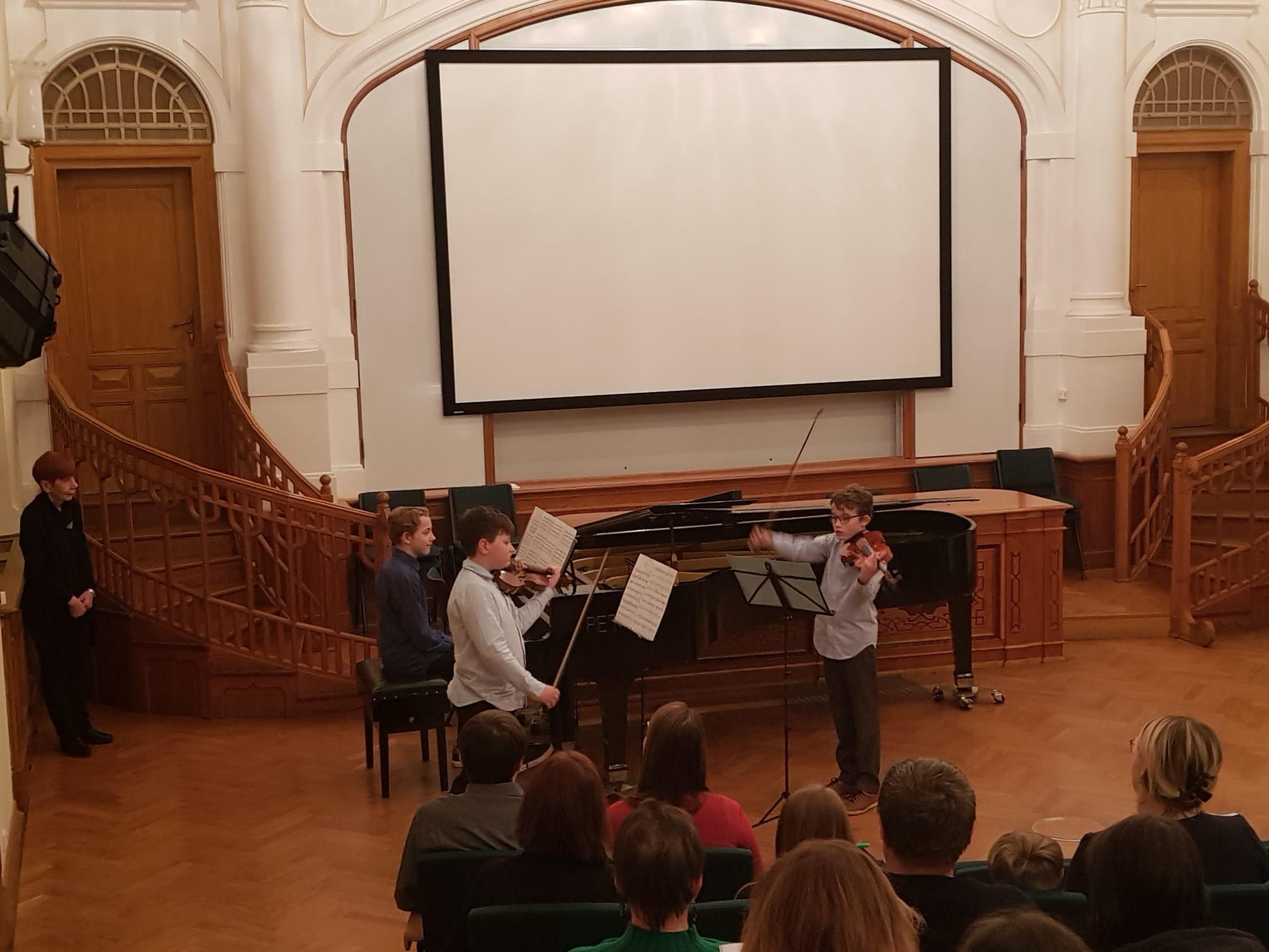 Od paní učitelky J. Šálkové účinkovala klavíristka Lucie Dvořáková a od paní učitelky J. Lejčkové, L. Podroužkové, E. Kohoutové vystoupilo komorní trio ve složení Jiří Štrunc, Štěpán Blahna - housle a Adam Blahna - klavír.